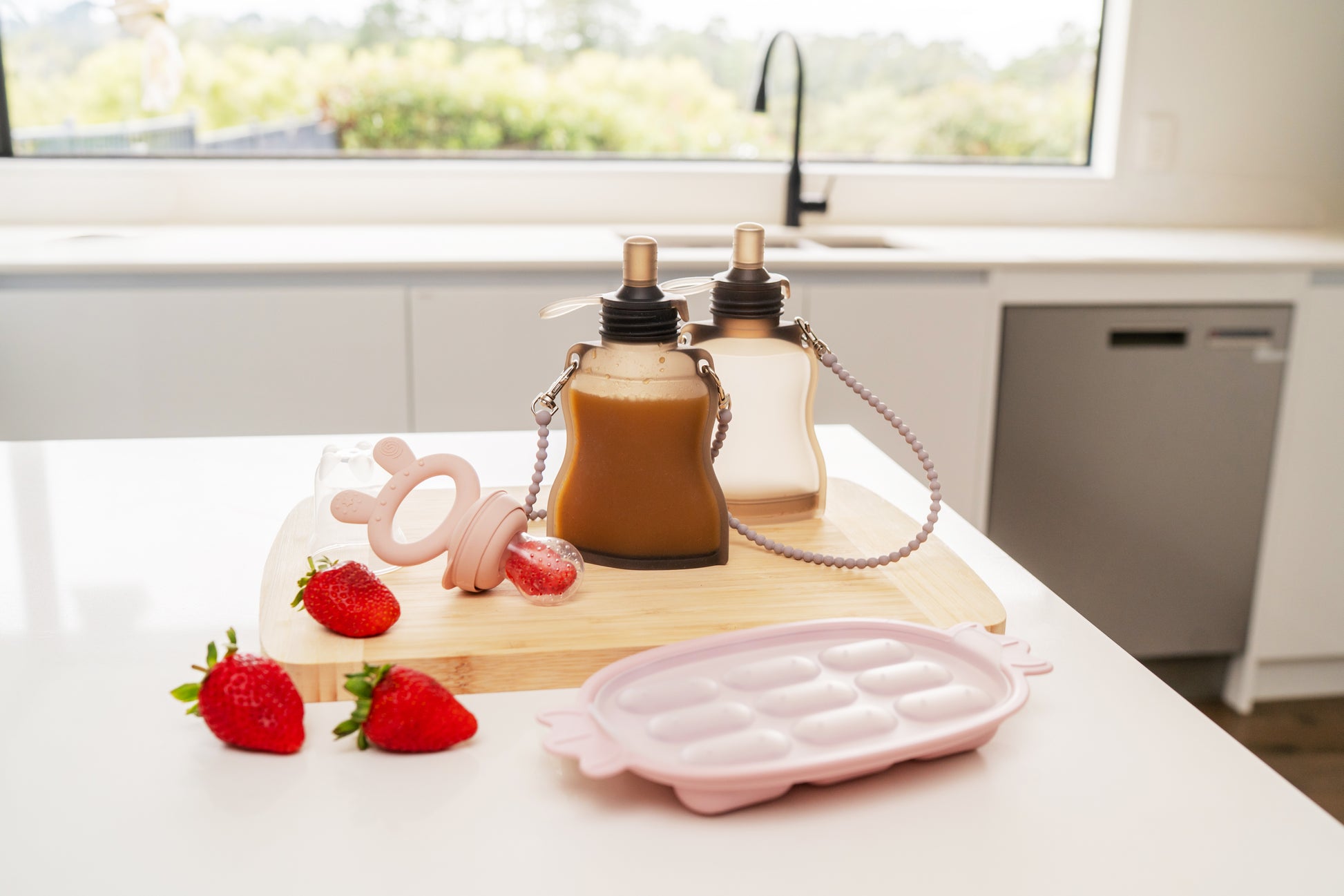 We've paired our Fresh Food Feeder & Silicone Nibble Tray Set with two Silicone Yummy Pouches + a handy silicone strap to give you everything you need for safe, mess-free feeding adventures. Whether you're starting baby-led weaning or preparing snacks for your little explorer on the go, this bundle has you sorted, AND you'll save by getting it all together!
