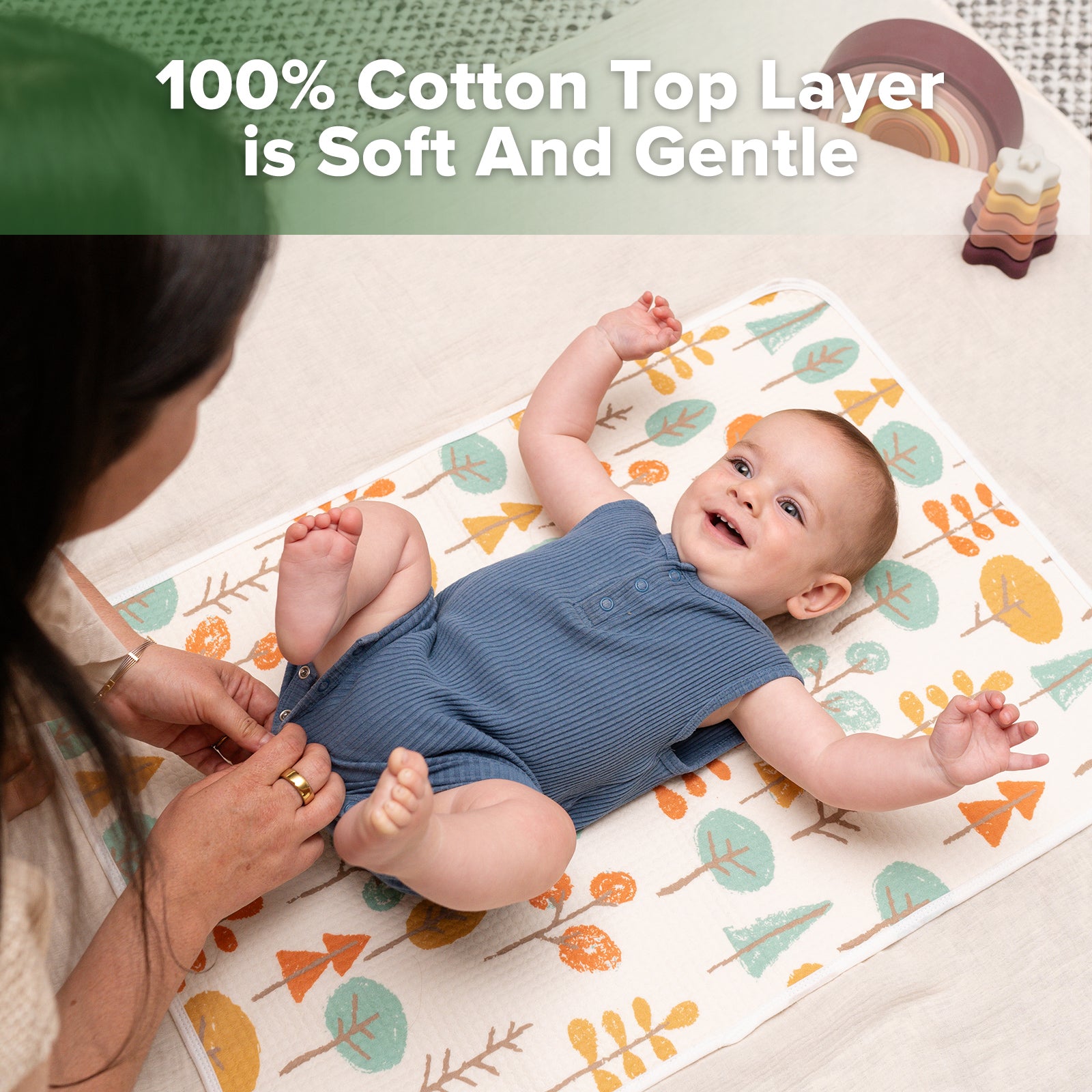 • Waterproof layer provides extra protection for messy nappy changes.